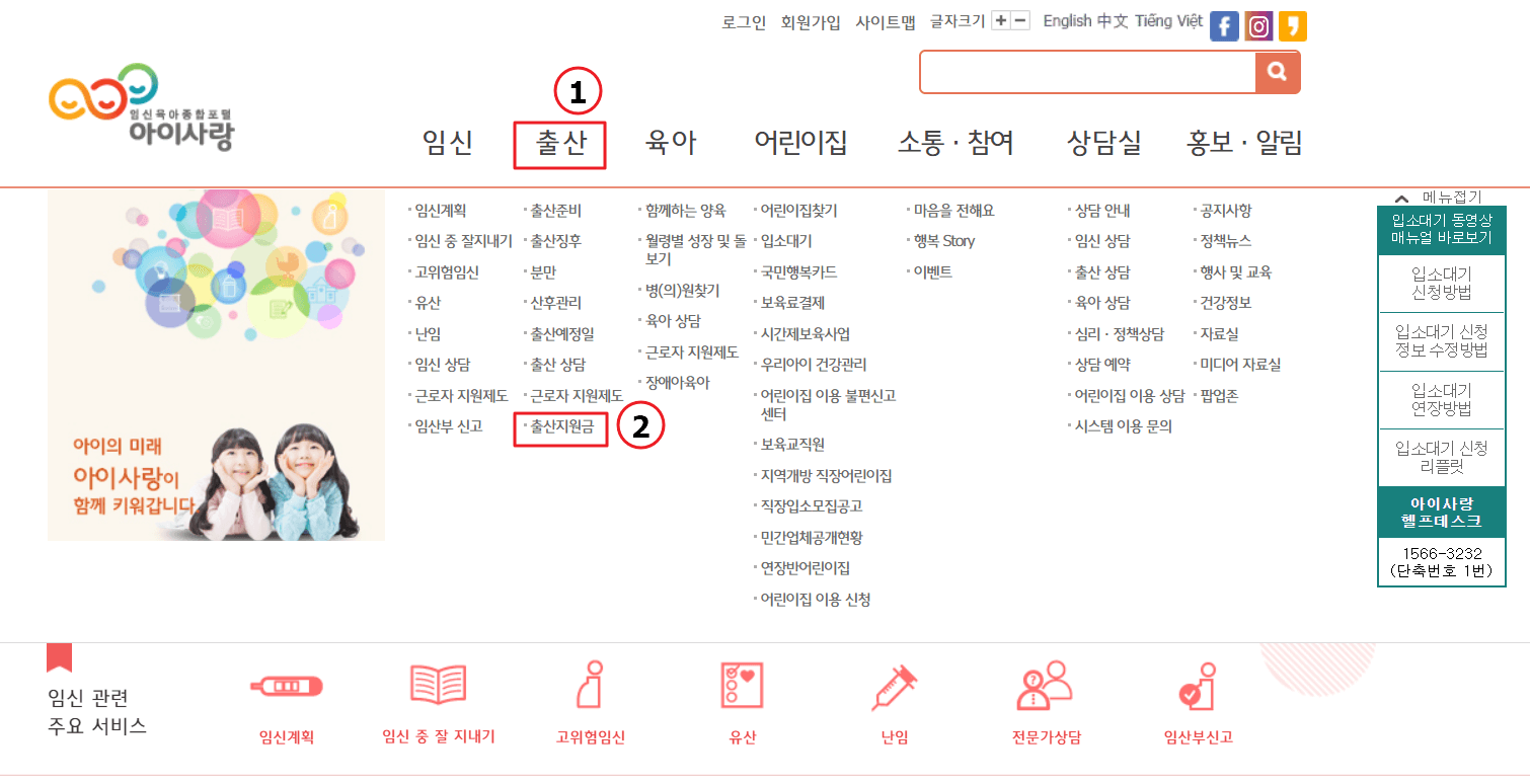 ① '임신육아종합포털 아이사랑' 홈페이지 접속하기 ↓